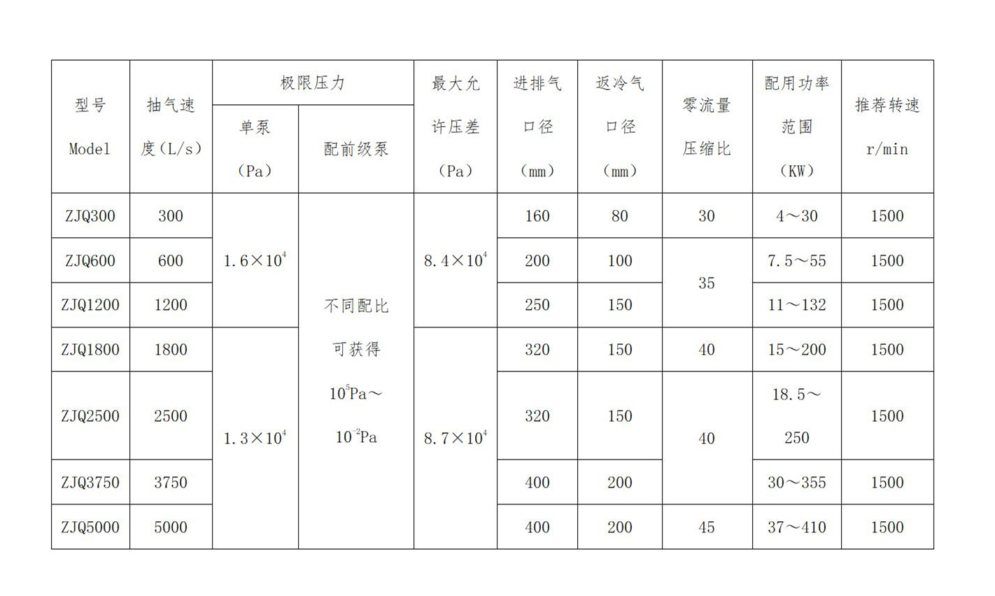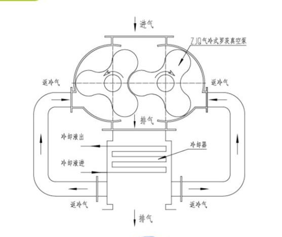ZJQ氣冷羅茨真空泵工作原理: 氣冷羅茨真空泵通過兩個(gè)三葉型轉(zhuǎn)子,在一對同步齒輪的驅(qū)動(dòng)下交替吸入和排出氣體。氣冷羅茨泵在工作中,被抽氣體是從垂直上方吸入,垂直下方排出。泵的兩端均有冷卻返氣口,向泵內(nèi)不斷提供冷卻空氣或用冷卻器進(jìn)行冷卻。 ZJQ氣冷羅茨真空泵工作原理圖: ZJQ氣冷羅茨真空泵技術(shù)參數(shù)