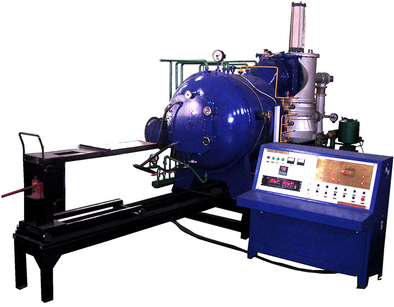(1)、爐體:爐體由爐蓋、筒體組成,主爐體是一個臥式放置的爐體。其中爐體(爐殼、爐門)采用雙層爐壁結構,夾層中通水冷卻。爐門為左開式,在其上邊設計有一個供操作者觀察的石英玻璃窗。真空管道上設計有防止破壞真空泵組正常工作的過濾器。兩個加熱供電連接線電極分別裝在爐體左右兩側。爐體外上部裝有爐內溫度測量接線機構、接點式真空壓力表和出氣體管道。爐體外下部裝有進氣體管道。爐體內裝有加熱體、保溫層、工件支承體(料臺)等。
